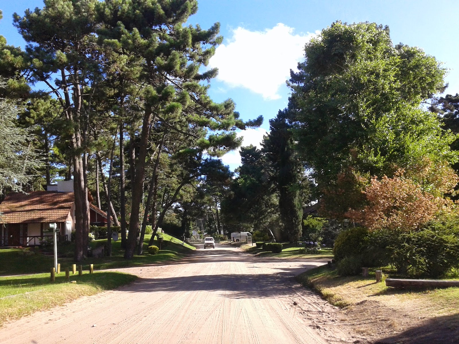 Otro de los días fuimos a recorrer Cariló, a dar una vuelta, respirar aire puro, admirar chaléts impresionantes y cabañas de madera entrañables, charlar un rato, comer dulces, tocar los árboles. Nunca había estado en Cariló y me sorprendió que fuera tan grande y su centro (unas cuantas casonas de madera convertidos en locales comerciales de precios elevados) fuera tan concurrido. Por los coches estacionados alrededor del nuestro, por las casonas y por los precios de todo pudimos notar que es la localidad con más lujo de la zona. Los precios fuero los que nos hicieron desistir de la idea de merendar en Cariló y volver a Gesell, a nuestro ya adorado camping.